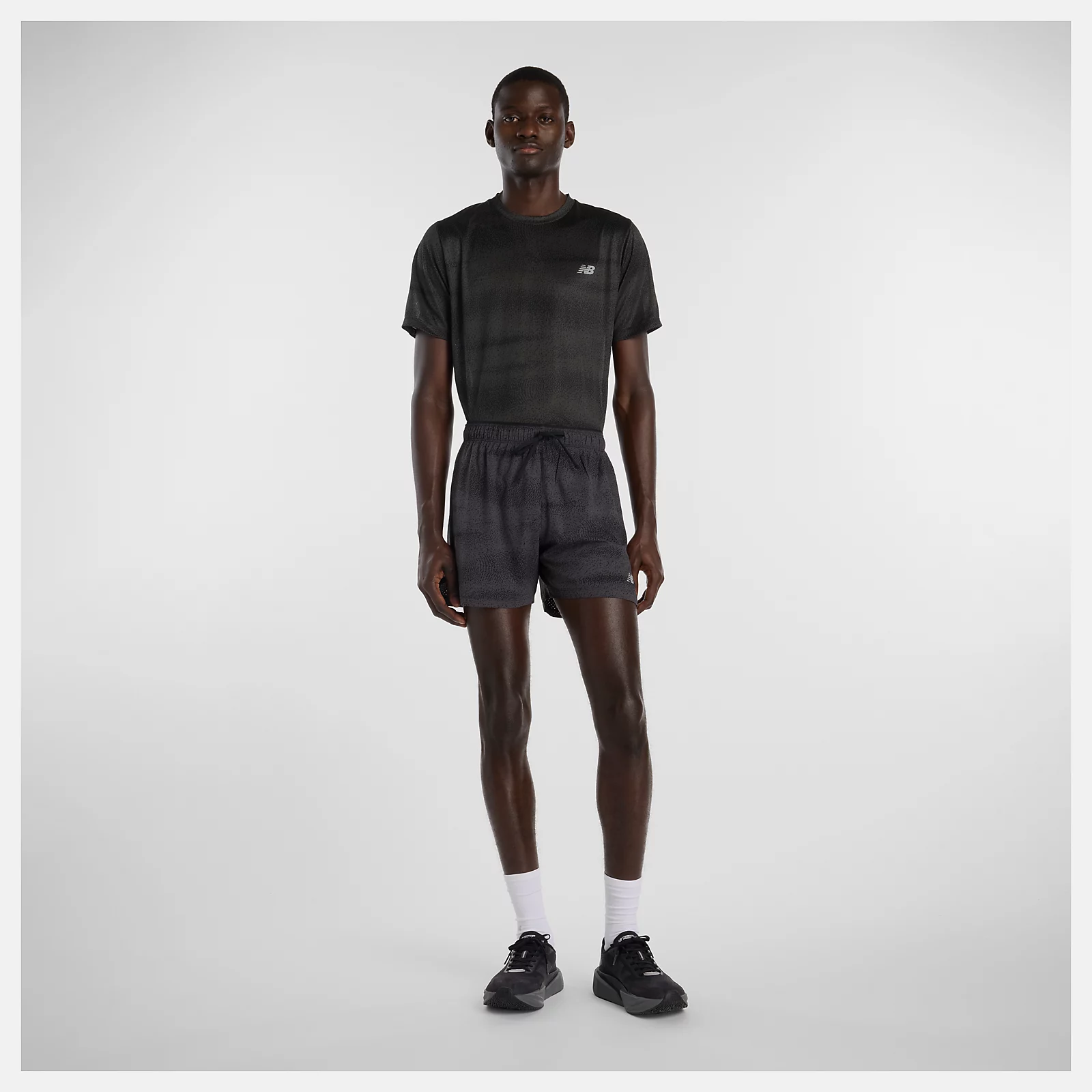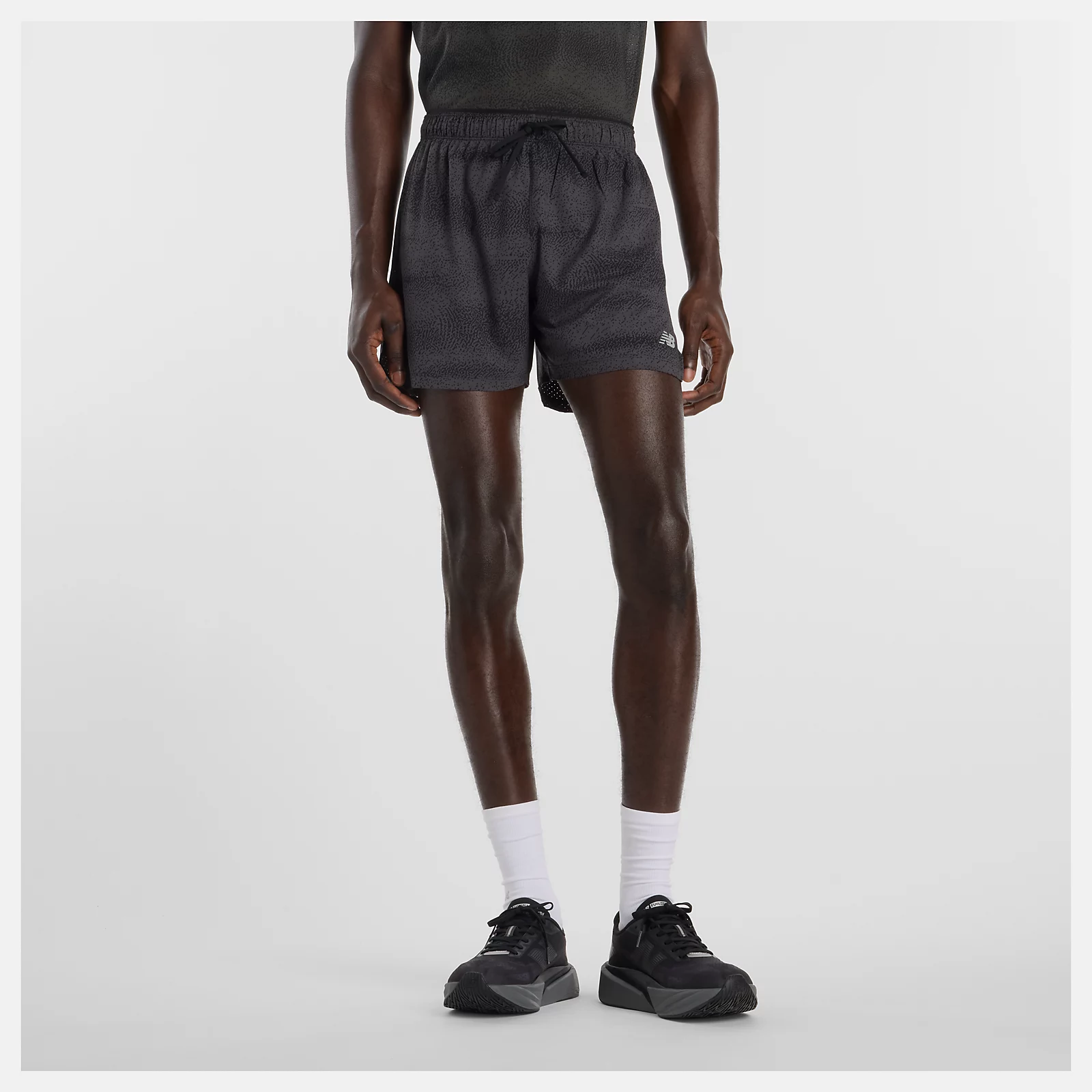 New Balance 專業慢跑5吋RC短褲(有內襯) 黑花紋 男
