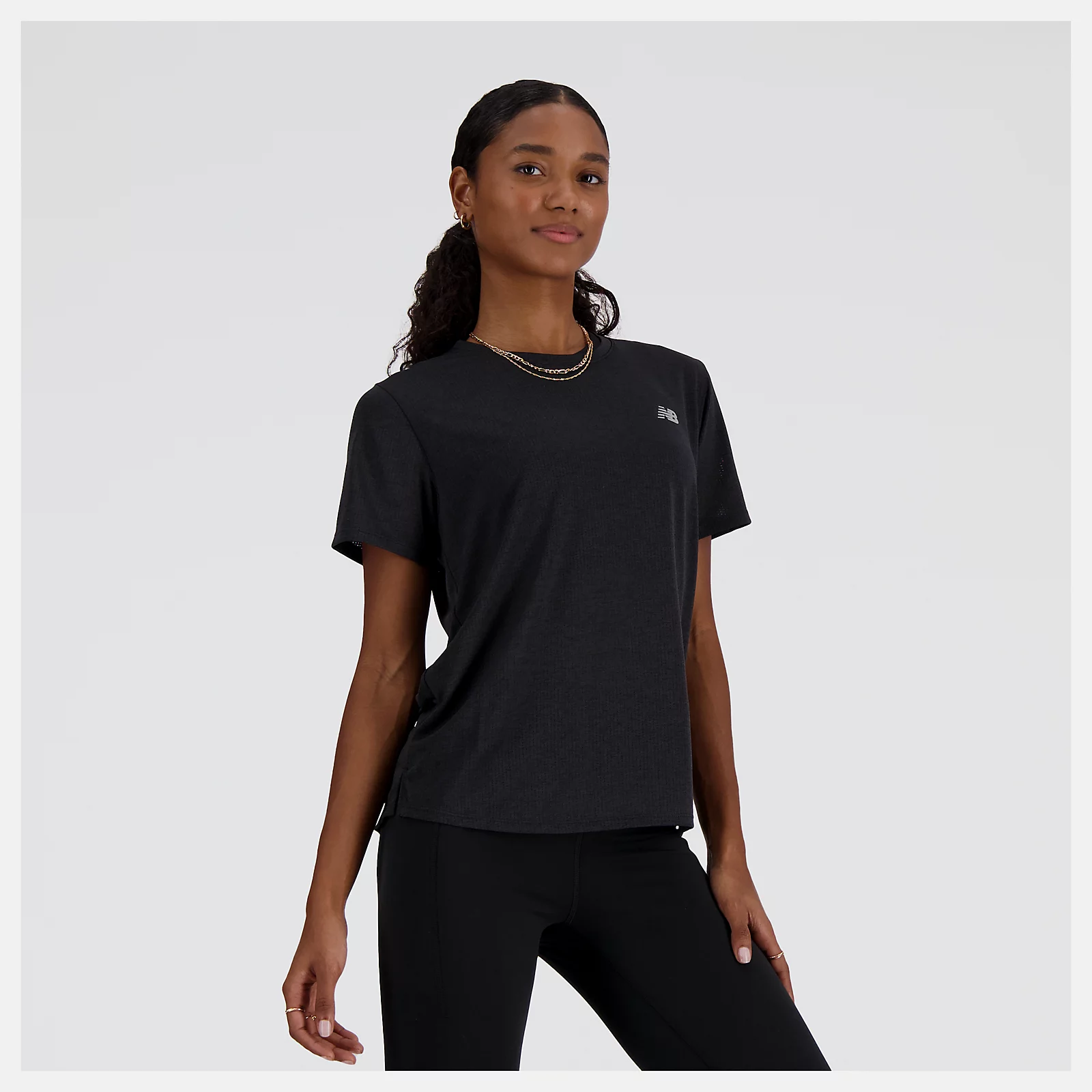 (特惠至1/12)New Balance 慢跑短袖上衣 黑 女